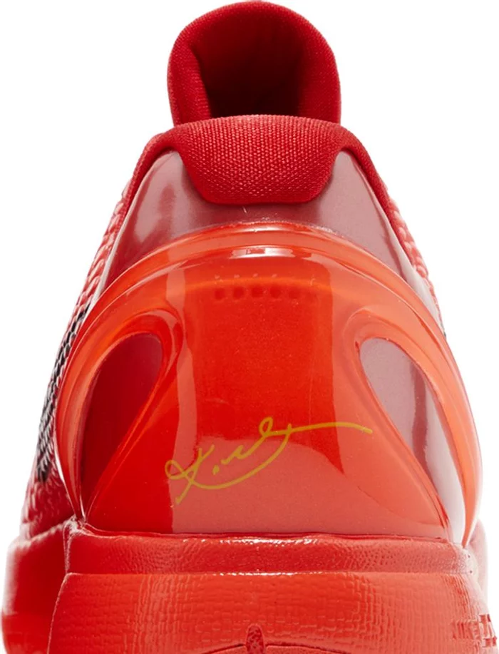 The Nike Zoom Kobe 6 Protro ‘Reverse Grinch’ delivers a color-inverted version of the iconic ‘Grinch’ colorway from 2010. A bright crimson color is executed on the scaly micro-mesh upper, secured with neon green laces and accented with a contrasting black Swoosh. A padded low-cut collar allows for maximum range of motion, while a molded TPU heel counter provides rearfoot stability. The sneaker sits on a lightweight Cushlon midsole with a springy Zoom Air unit nestled in the forefoot.